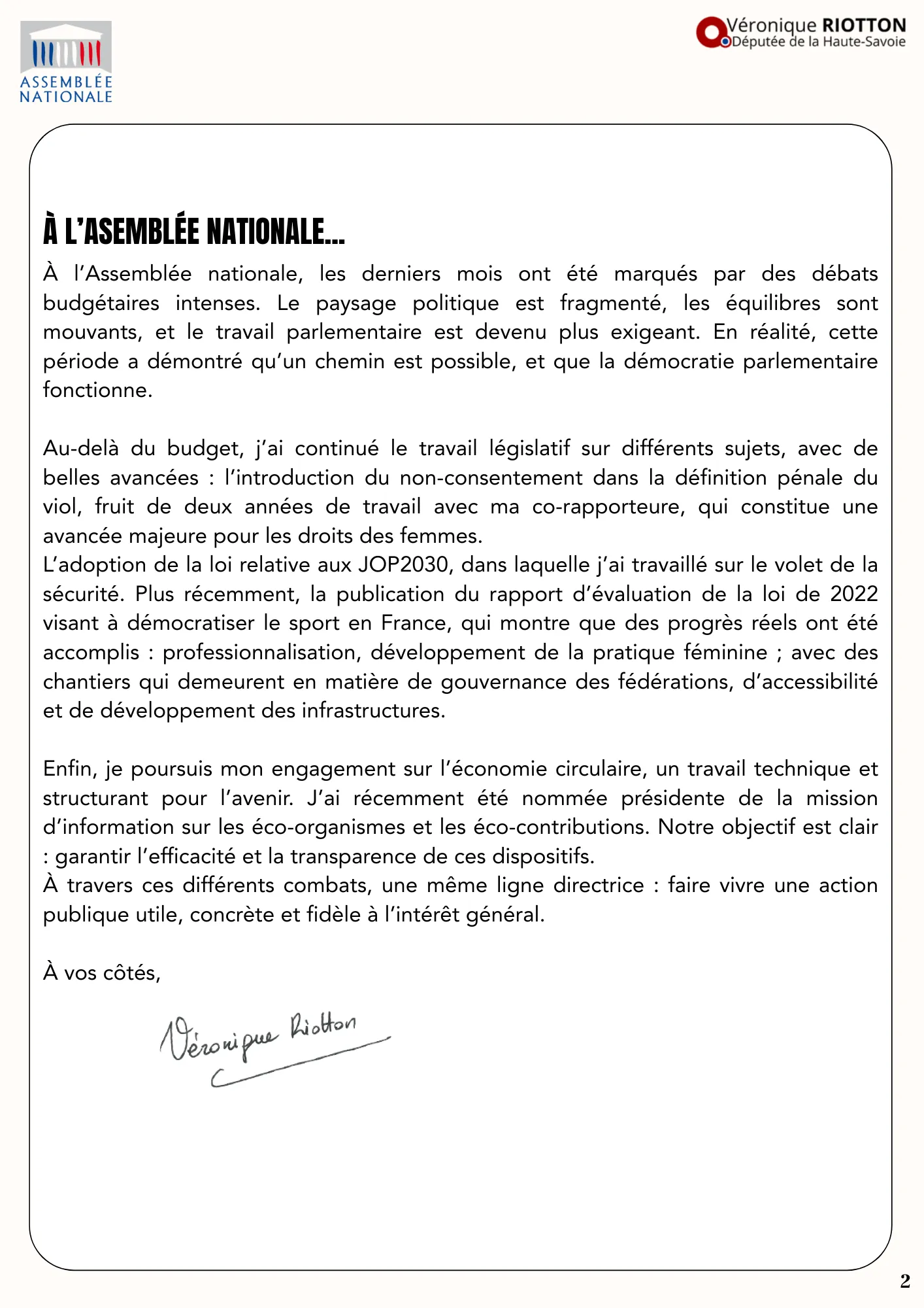 Retour sur l'année 2025 de votre députée de la Haute-Savoie Véronique Riotton.